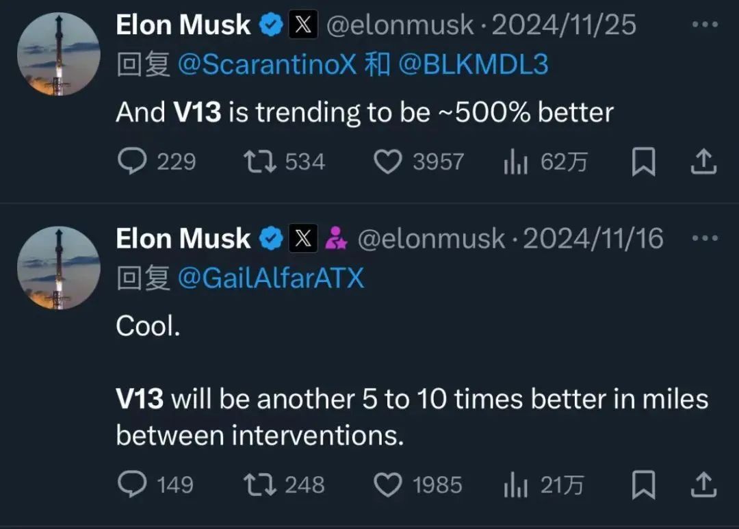 这不,特斯拉的FSD V13版本已经出来了,马斯克说能力提升500~1000%。那么,大家只有继续卷咯。