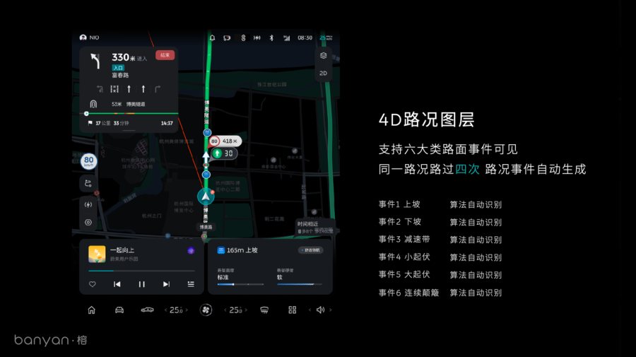 蔚来提出了在智能底盘上使用4D舒适领航+自适应悬架预测控制方案,不过,其单车构建4D舒适领航的导航图层,需要在同一地点经过四次才能生成。也就是颠簸图层建立在导航地图的基础上,现阶段需要使用导航,才能实现4D舒适领航功能。