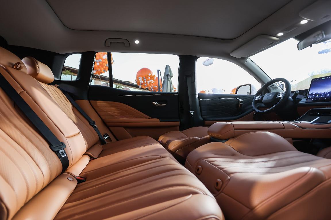 对于家庭用户来说,大空间是刚需。基于AEP3.0纯电专属平台打造的埃安霸王龙,从架构上就保证了空间表现。舱内有效使用长度达3002mm,后排腿部空间最高可达1106mm,挑高近1.3m,纯平的地台再加上接近90°的开门角度,出入更方便。