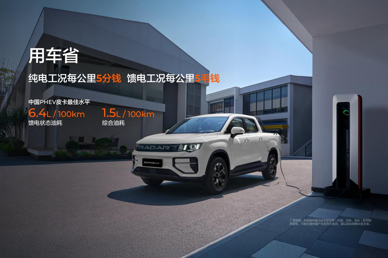 吉利雷达长久以来的市场理念就是“电比油低”。一方面买车油电同价,无需购置税直接帮用户省去1万多元。另一方面,用车也非常省,百公里综合油耗仅1.5L/100km,即便亏电油耗也6.4L/100km,相比燃油皮卡平均每公里节省0.3元以上。同时,雷达超级电混皮卡还可享受绿牌待遇,还可走绿通免高速费,进一步降低运货成本。