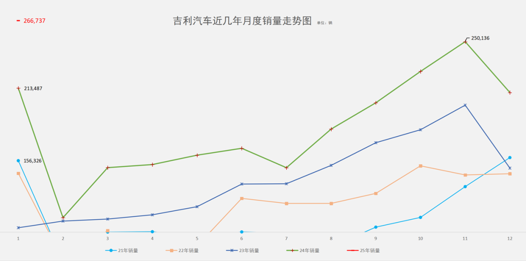 这意味着在丢失国内车企桂冠3年之后,吉利重夺国内销量冠军,迎来了2025年的开门红!