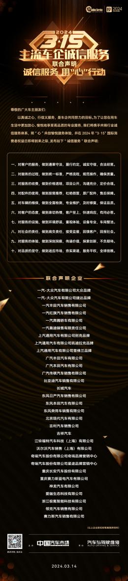 “3·15”车企诚信服务联合声明