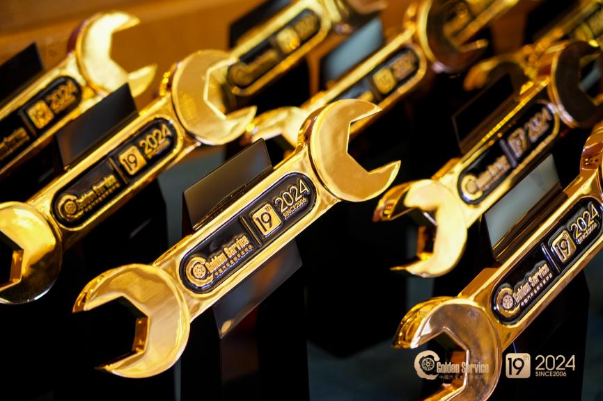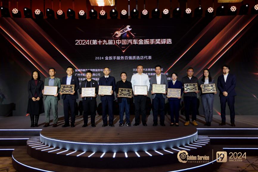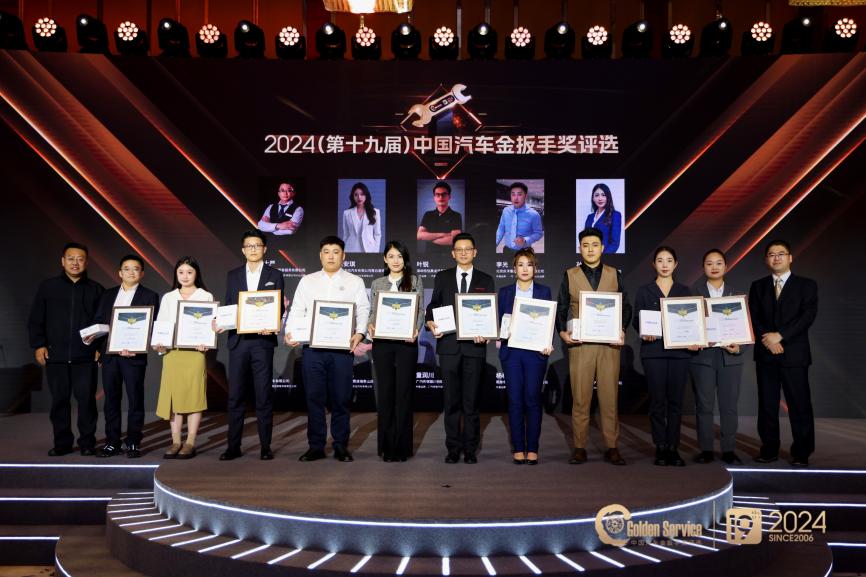 为了树立品牌服务标杆榜样,助力提升汽车服务质量,促进良好市场环境,主办方同期举办了2024金扳手服务百强质选店评选活动,该评选由中国汽车维修行业协会指导,依据金扳手GES-150服务评价标准和《放心汽修认证》团体标准,对候选经销商进行专业评审,最终共有10个品牌的全国100家优秀经销商获得“2024金扳手服务百强质选店”荣誉称号,他们代表了行业顶级水准的“金扳手”服务。