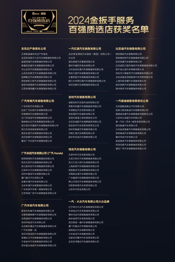 2024金扳手服务百强质选店名单