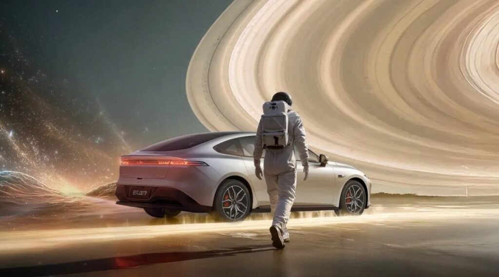 通过运用VP 虚拟制片+AI 生成技术等技术,将2025款eπ007的外观设计细节如宽体低趴、大溜背造型,以及268颗LED的贯穿式尾灯等,以极具冲击力的画面呈现在观众眼前,甚至让观众能够“近距离”欣赏车身线条的流动感与光影变化,仿佛置身于真实的车展现场。
