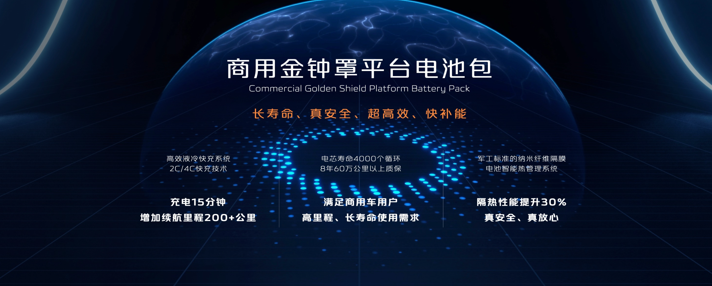 在电池设计方面,长安凯程凭借长安汽车电池研究院的成熟研发管理体系,商用金钟罩平台电池包具备长寿命、真安全、超高效、快补能的技术特点。电池包采用高效液冷快充系统,可拓展搭载2C、4C快充技术,用户只需充电15分钟,即可获得200公里以上的续航里程增加。电芯采用多功能涂层包覆负极材料以及电解液成膜改性,提高寿命至4000个循环,可为用户提供8年60万公里以上质保,满足商用车用户高里程、长寿命使用需求。