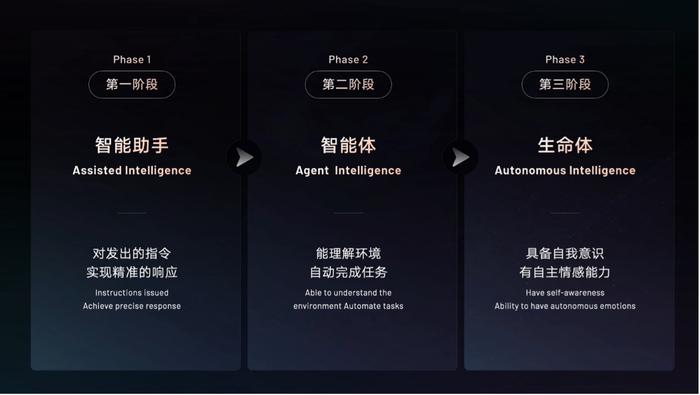 在吉利看来,智能汽车将经历“智能助手”、“智能体”和“生命体”三个发展阶段,目前很多汽车产品仍旧处在智能汽车的第一阶段,鲜有能够理解环境自动完成任务的智能体,就算有,其实更多的也仅仅算半个智能体,而要进入到智能汽车生命体时代,则需要有自我意识自主情感能力,目前这个时代没有到来。