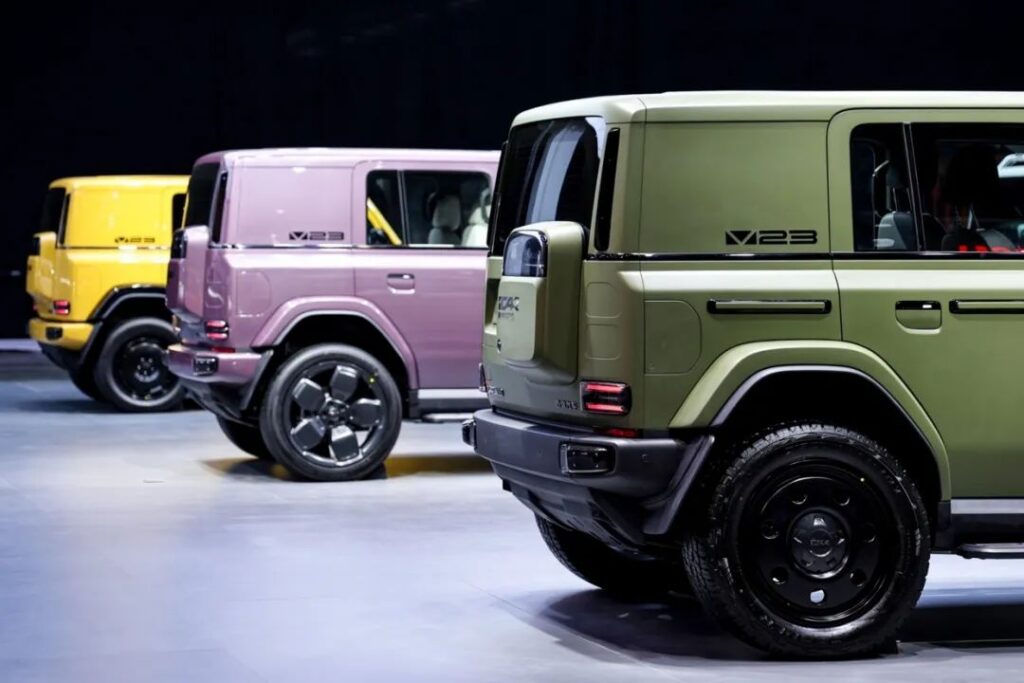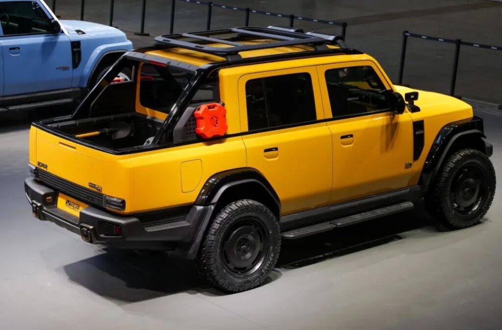 比如V23皮卡概念车创新设计的后箱空间通过导轨系统、挂架、外接拓展接口及承重超100kg的折叠尾门,满足了骑行、摩友、垂钓等新兴玩乐场景需求。V23敞篷概念车的经典布质软顶设计,则将硬派越野风格与复古概念感巧妙融合,唤醒人们对过去黄金越野时代的记忆。