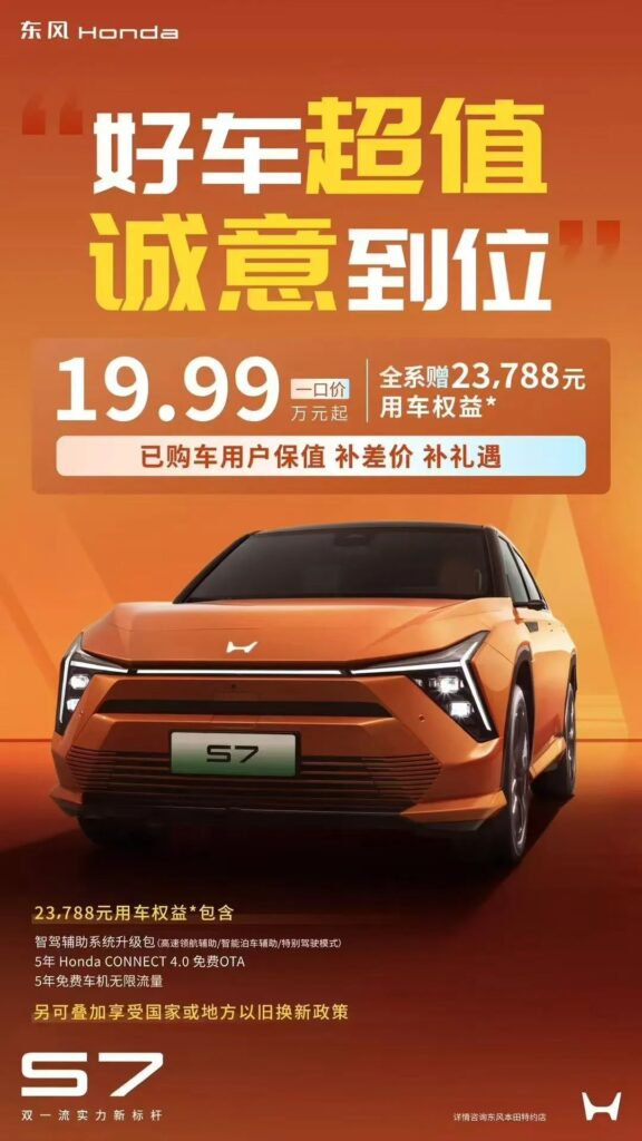 如果说26万元的S7,可以被贴上“定价傲慢”“脱离市场”的标签。那么调价之后更加合理的全新价格,和兄弟车型“同价同权益”,则是本田再一次理解中国市场,积极且勇于加入新能源竞争的一次尝试。