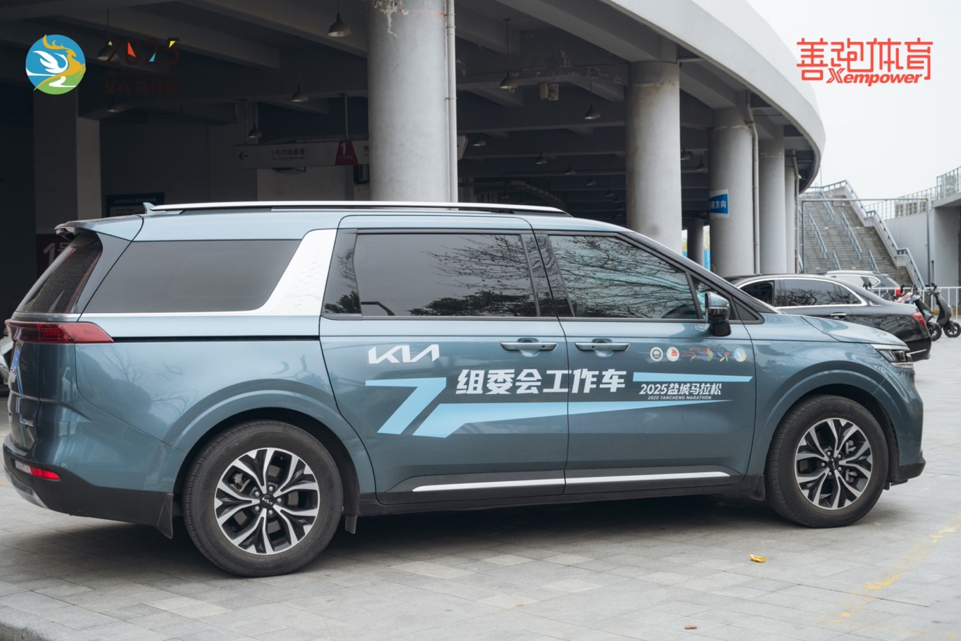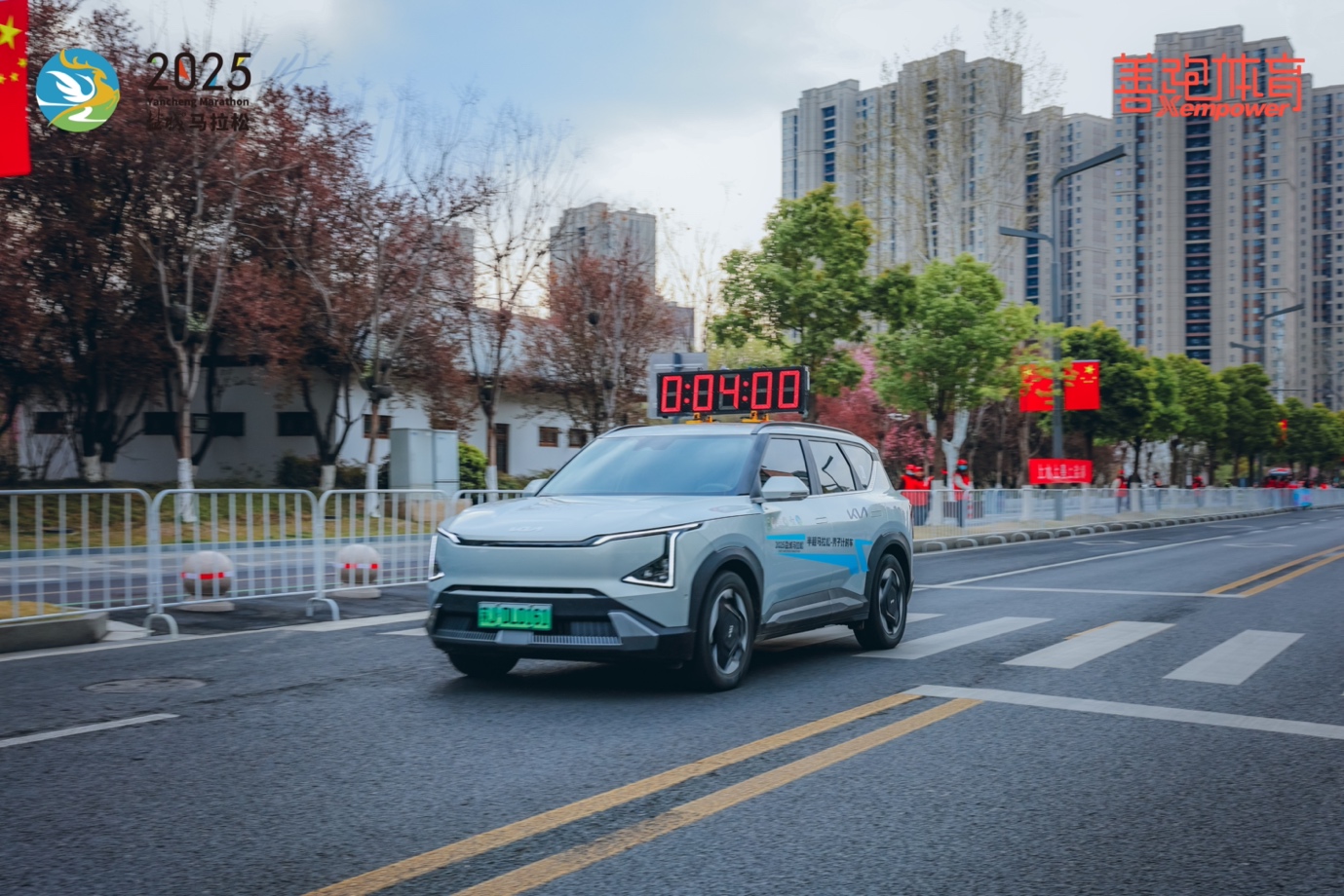作为2025盐城马拉松冠名赞助商,悦达起亚特别设置了多座补给站,组织了50名志愿者,为赛事提供各项支援和清洁环保服务,并组建了起亚EV5、狮铂拓界、嘉华作为领跑车队为赛事全程护航。