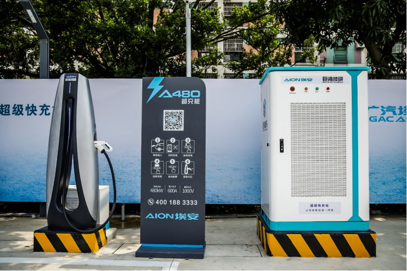 不得不佩服的是,广汽埃安很早就开始技术进化的步伐。480kW峰值充电功率、1000V峰值充电电压、600A峰值充电电流,随着A480超级充电桩的出台,广汽埃安在800V电压平台基础上结合大电流的方案解决了快速补能的问题。