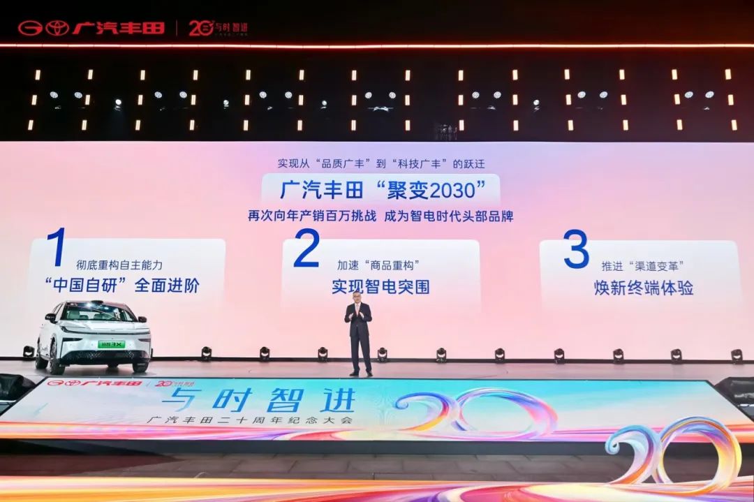 “在合资2.0体制下,广汽丰田开启‘聚变 2030’战略,年产销重回百万,成为智电时代头部品牌。”就在广汽丰田二十周年庆典上,广汽丰田执行副总经理文大力的豪言掷地有声。