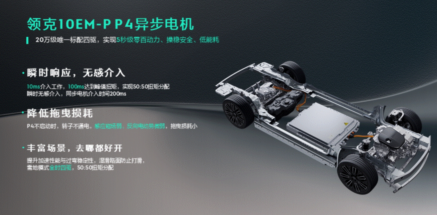 新能源车虽然省,但用户的需求是,能否性能好一点?恰好超级性能是领克品牌运动基因的延续。其前驱动电机最大功率达160kW,带来媲美纯电车型的迅捷加速感受;四驱版本如领克9002.0T探索版,总功率高达650kW,百公里加速仅需4.3秒,性能直指高端性能车。更关键的是高速再加速能力——100~120km/h区间动力响应迅猛,超车过程干脆利落,减少并行时间,显著提升高速行驶安全性。