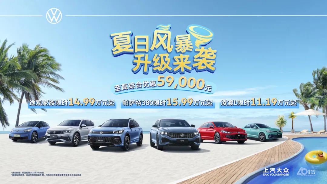 回馈内容为:即日起至7月31日,推出一系列夏季限时钜惠活动,涉及到帕萨特、途观家族、朗逸家族、ID.家族和凌渡L等多款车型。不仅如此,还叠加了一系列金融政策和保值回购/焕新政策,朗逸家族、凌渡L和途观L Pro 的3年8折保值焕新/ID.家族的3年6折保值回购,为车辆长期使用后的残值托底。