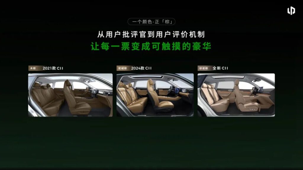 比较了解零跑的读者可能知道,21年C11预售之后,这家新势力造车组织了一场共创,最终决定新增了一款棕色的内饰颜色。