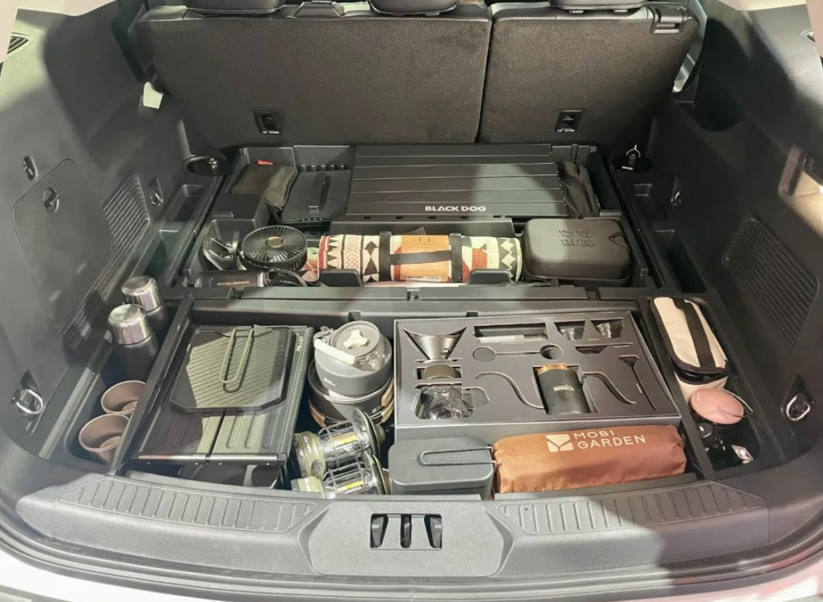 从四驱穿越版车型的产品力上可以看到,后备厢地板上容积达到1505L,可以说是同级最大的后备厢,后备厢总计15个储物格,最里层配有移动挡板。如果二排放到后,释放2487L的容量,近6㎡超大空间,包括第二排保留了前后滑动功能,床车模式、咖啡车模式、观星车模式、宠物车模式一应俱全,满足消费者对户外生活多样化的需求。