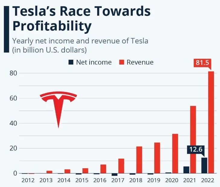拿特斯拉财报作为例子,亏损率比较严重的情况,出现在2012年(Model S量产)、2015年-2017年(为Model 3量产和建设千兆工厂做准备)。每一次大规模支出引发当年财务数字“难看”,却决定了后续发展的顺畅。