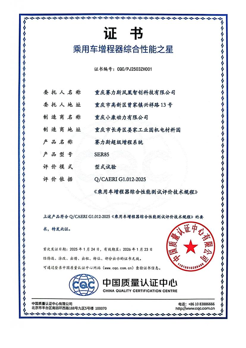 如今,赛力斯以用户需求为创新动力,实现增程技术边界的不断拓展,为用户带来了更加优质的出行体验。为了更好地引导行业发展,赛力斯携手20余家行业同仁,牵头《电动汽车用增程器技术条件》标准的修订,从技术参数定义到试验方法等方面系统化更新,旨在更好地满足现阶段行业技术发展趋势要求,帮助增程行业构建高标准的技术体系,推动增程器及相关零部件产业链升级和优化,助力国家“双碳”目标的达成,强化我国在增程领域的全球领先地位。