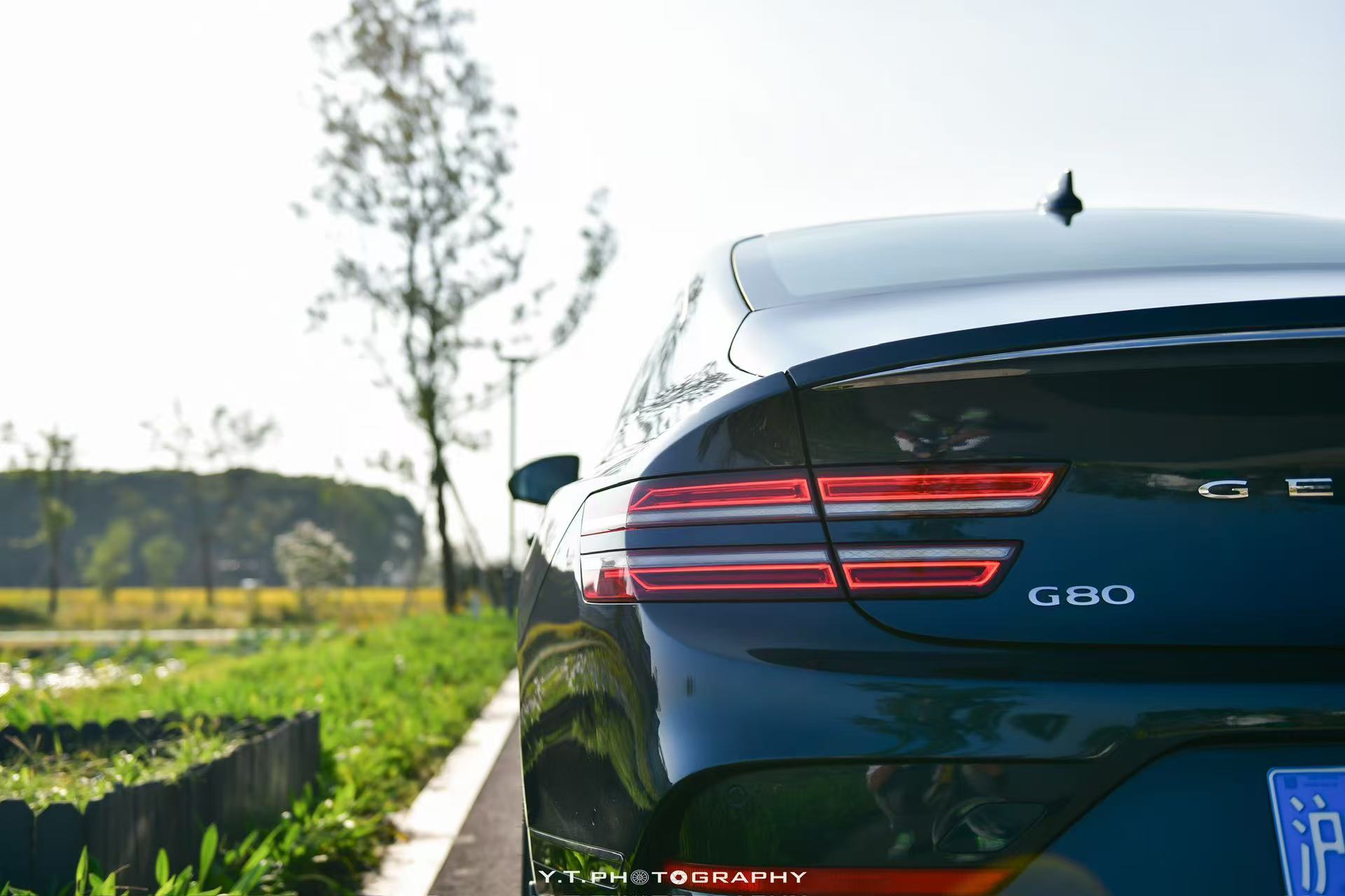 捷尼赛思G80配备了小鸭尾和双层式尾灯,底部还设有隐藏式排气布局,牌照框架区域从倒梯形变为正梯形,并且两侧新增导流孔,让整个车尾看起来更有层次感。整体而言,捷尼赛思G80的外观设计既大气又不失细节,非常符合现代豪华车的审美标准。