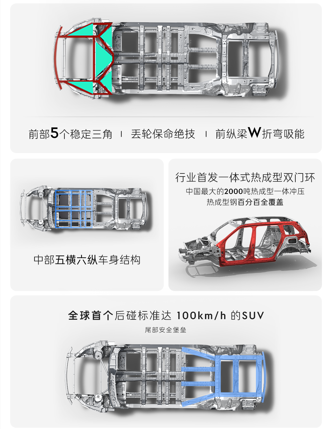 在采用全新一代端到端感知模型情况下,其AEB最高刹停速度130km/h,同级第一。另外该架构还全球首创一体热成型双门环/D柱,强度提升3倍,结合下车三重安全结构,构建起了360堡垒结构,可通过100km/h追尾测试,安全能力又实现了进一步提升。