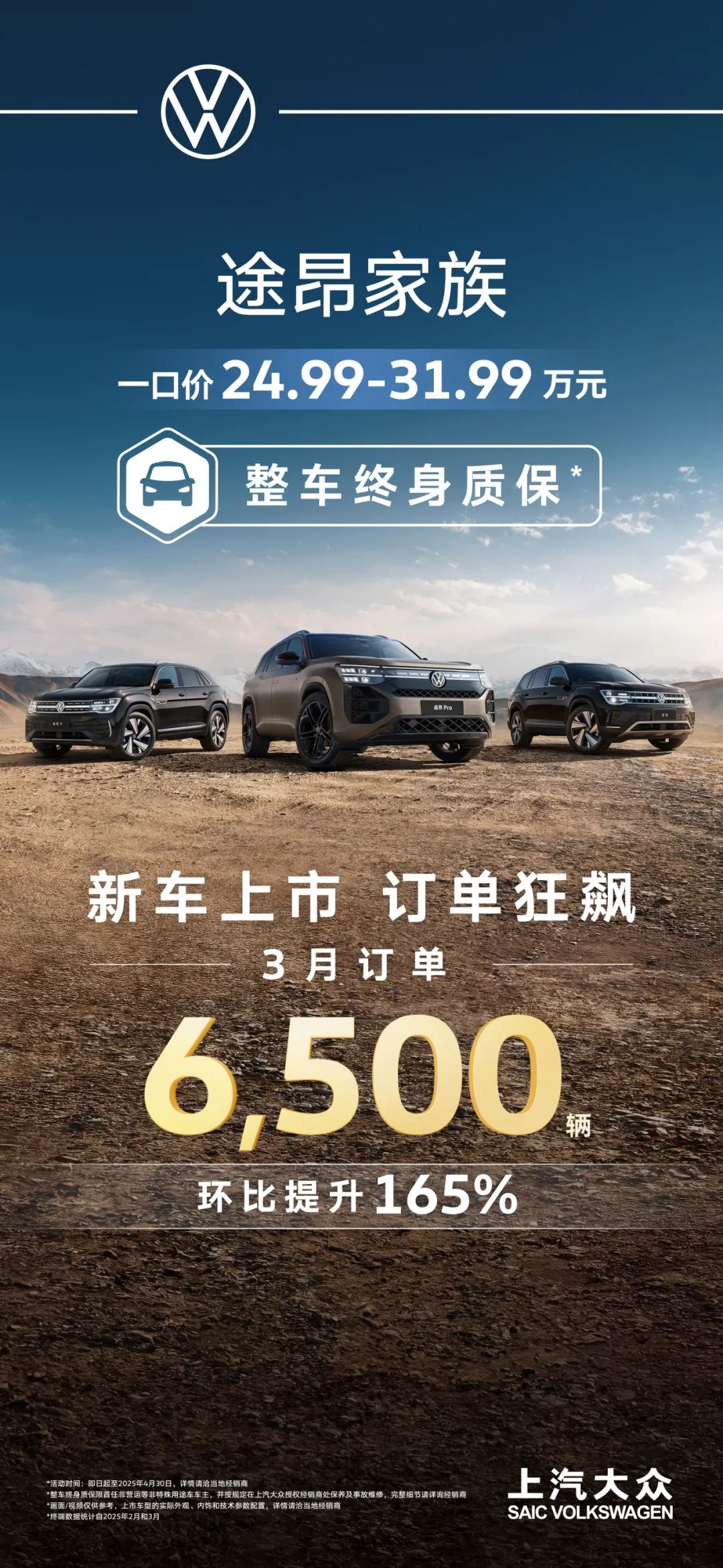 近日,上汽大众公布3月成绩单,途昂家族订单量达6,500辆,再次凸显了上汽大众在中大型SUV市场的强大竞争力和领先地位。上汽大众途昂 Pro自3月上市以来,以诚意满满的一口价及整车终身质保政策,成功点燃终端市场购车热情。