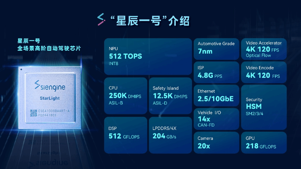 首先是星辰1号在所处领域的制程领先性,“我们目前是真正能够拉出来要今年能够量产的7纳米高阶辅助驾驶芯片。”