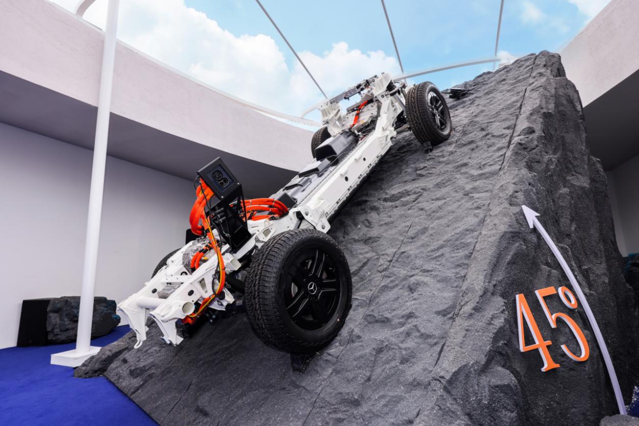 硬核越野安全:高压电池采用高强度抗扭外壳,强度高、重量低、防水防腐防冲击,布局于梯形车架内不仅可免受侧面冲击,还让整车刚度提升超过50%。车底下方的高性能“盾甲护板”由高科技碳纤维复合材料制成,即便在其上仅有25平方厘米的面积上施加10.5吨的压力,整块护板也能保证不变形,而这相当于4辆AMG G 63的重量,由此可以保证在恶劣地形下,尖锐物体的冲击也不会损伤电池。为打造真正适用于越野的电池,奔驰的电池测试更为严苛,如将电池投入电解液80次、将电池加热到50°C后立即浸入近0°C的冷水、使用机械设备扭转电池包等,进行耐腐蚀性、漏电、密封性等测试,保证纯电G级越野车的电池面对涉水、温差、扭转等越野工况时依然从容。此外,每一代“大G”上市前都会在舍克尔山经历336次越野挑战,纯电G级越野车更穿越南法大平原、瑞典北极圈,在多种天然越野路况中练就硬核安全。