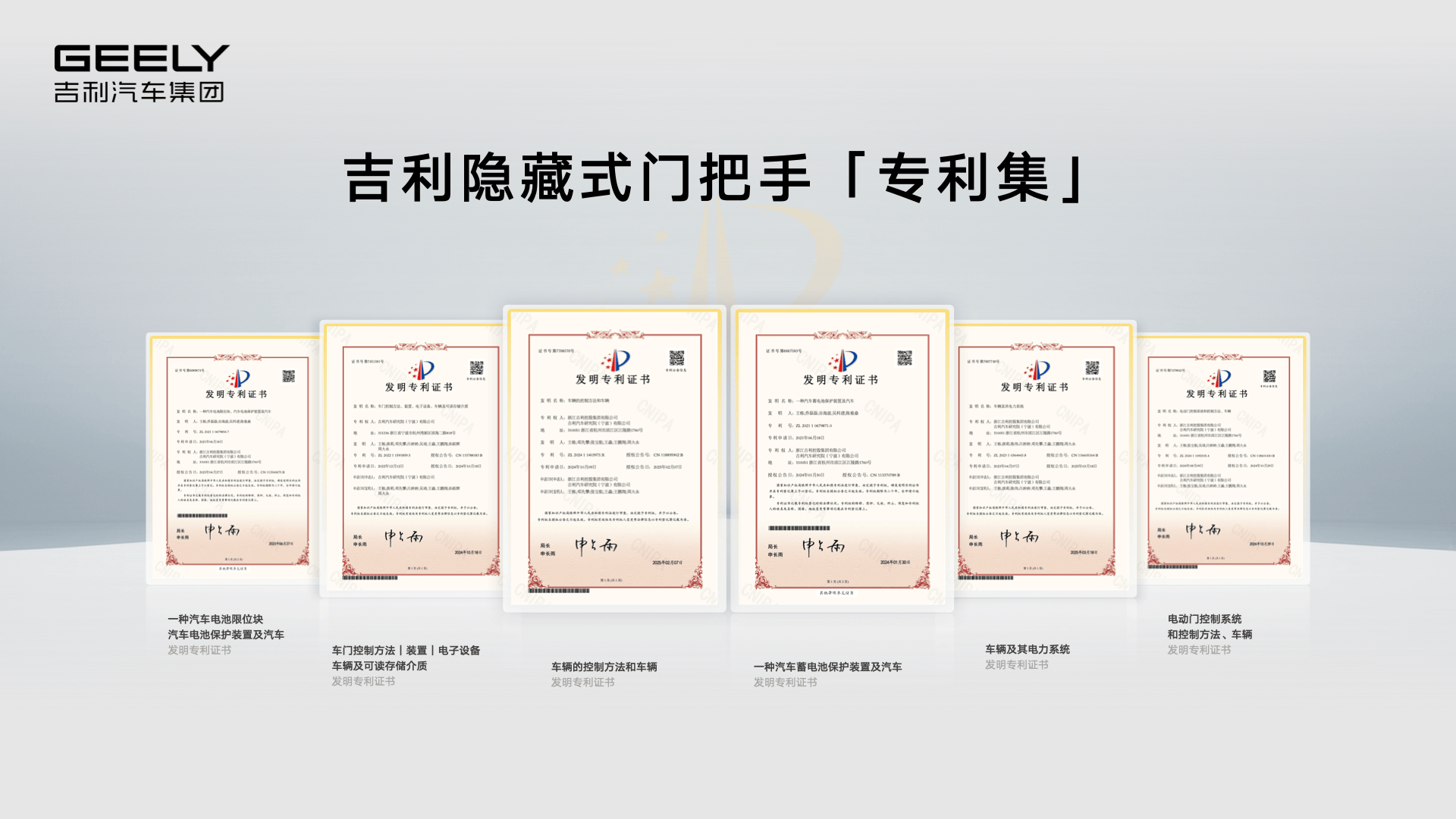 安全专利方面,在中汽信科发布的汽车安全技术领域专利公开量榜单中,吉利以1562件专利数位列中国品牌第一。例如,吉利完成了隐藏式门把手安全专利集群的布局,包括国内外6项核心安全专利,并于2024年8月在银河E5上市发布会上向全行业共享这些专利技术。当车辆遭遇碰撞时,门把手会立即自动弹出,方便车内人员和车外救援人员迅速打开车门,为紧急救援提供便利。