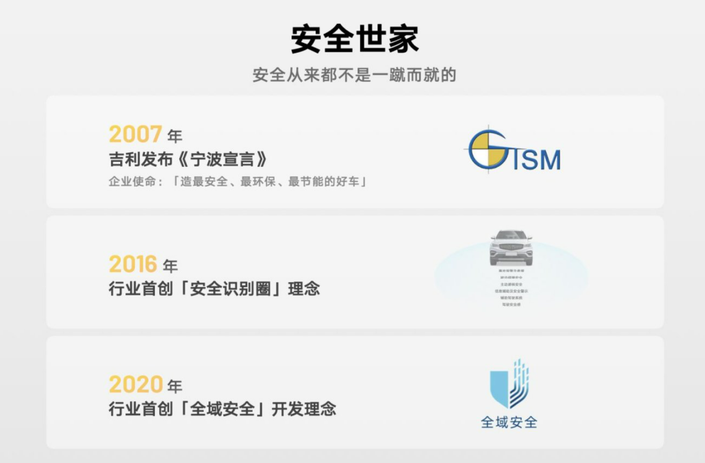 安全第一,一直是吉利的产品开发战略之一。造车30年来,吉利围绕“安全”取得了一系列技术成果,构建起完善的技术体系。