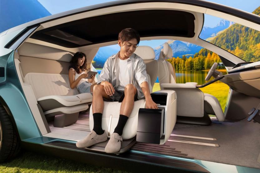 副驾驶座椅包含了众多巧思。座椅选用可侧向旋转的自适应零重力座椅,适用于L2~L3级别自动驾驶状态下各种新型使用场景。座椅下也贴心地设置了独立储物空间,避免了主副驾储物空间共享带来的不便。