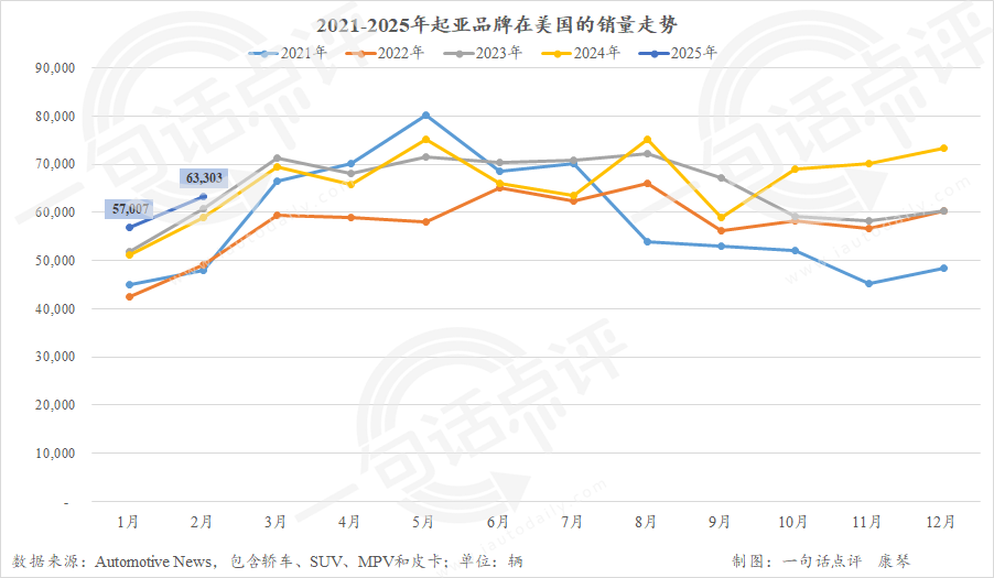 同样地,得益于电动车销量同比增长22%,2月起亚也取得了6.3万辆的好成绩。