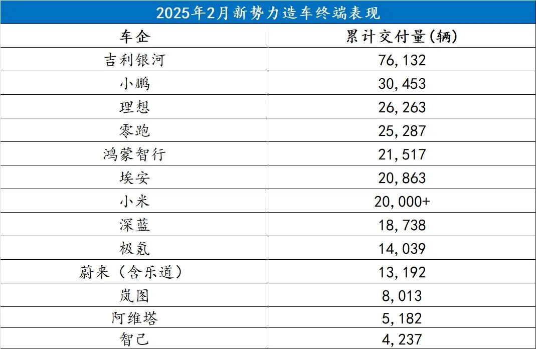 至于鸿蒙智行,2月只售出新车21,517辆。理性客观的讲,预料到其进入2025年以来,碍于产品节奏的问题,会遇到一定的麻烦,但未曾料到情况会特别的严峻。