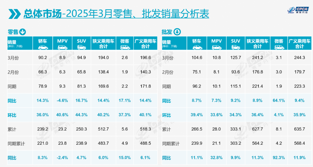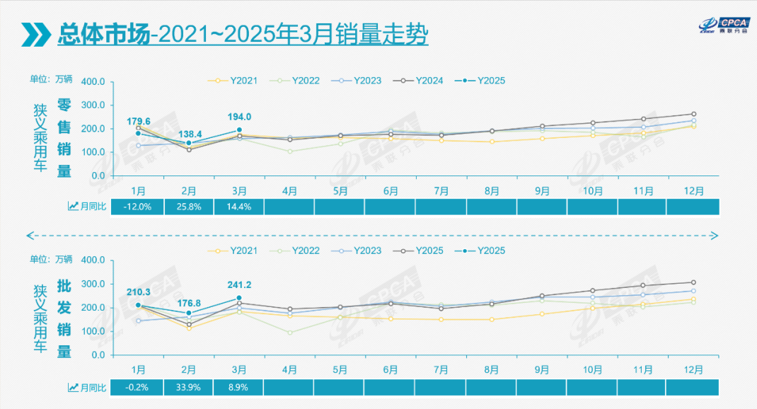 根据统计,随着节后新车的密集上市,经销商和车企优惠力度加大,又有以旧换新补贴政策推动,车市不断回暖,3月国产狭义乘用车零售销量同比增长14.4%至194.0万辆。这是国产乘用车市场同期有史以来的次好成绩,只略低于2019年的198.0万辆。