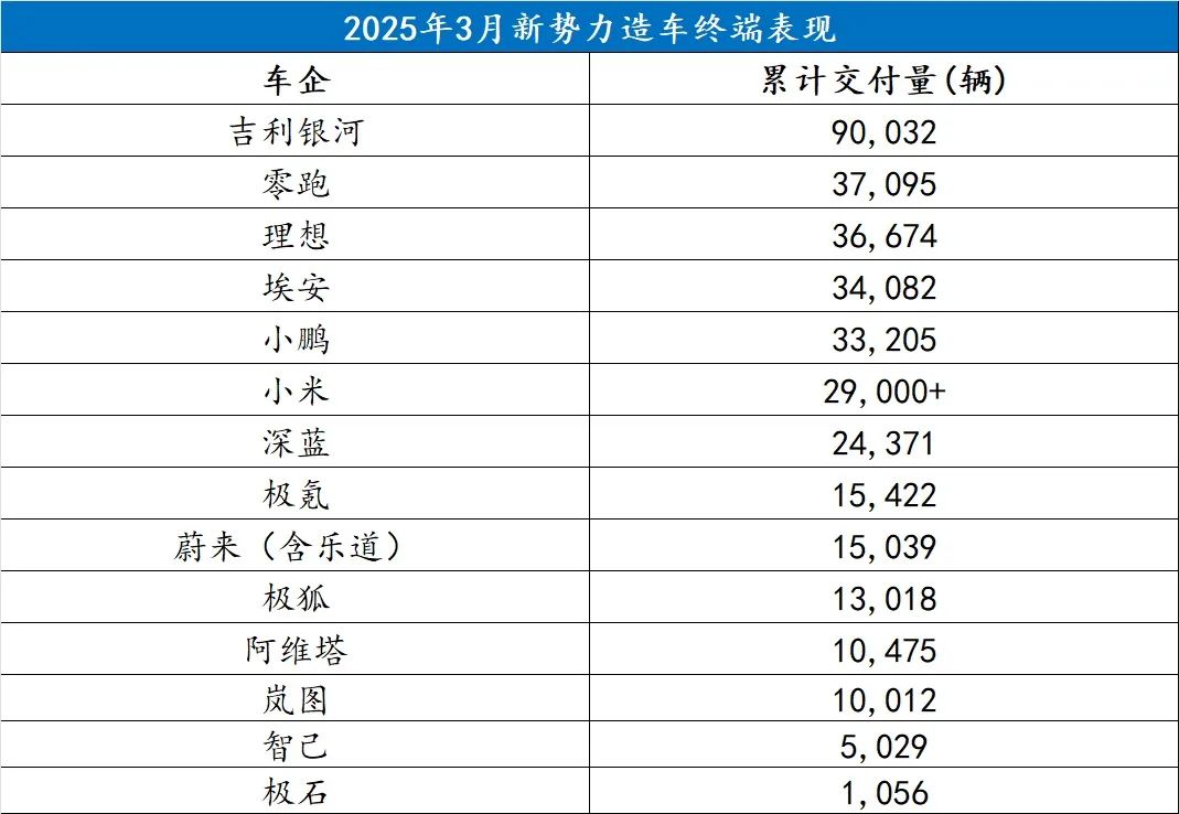 实际上,如果说1月与2月的销量表现,不可避免受到了春节假期的影响,那么刚刚结束的31天,无疑是进入2025年以来最具说服力的一个周期。而接下来的篇幅,试图按照各家发布数据的先后顺序展开分析。