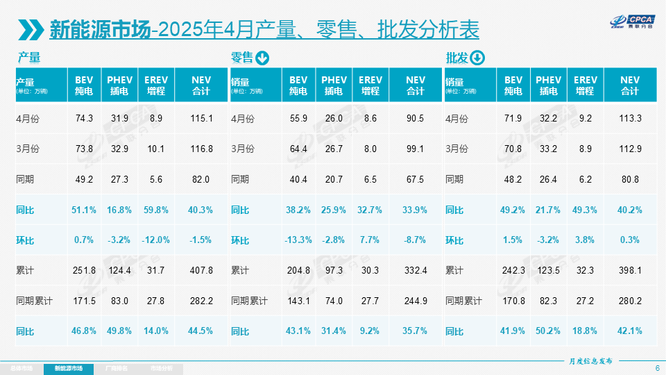 殊不知,结合上周末乘联会公布的4月终端成绩单,再次佐证了我的判断,新能源车零售渗透率仅环比微增至51.5%,仍徘徊在50%附近。