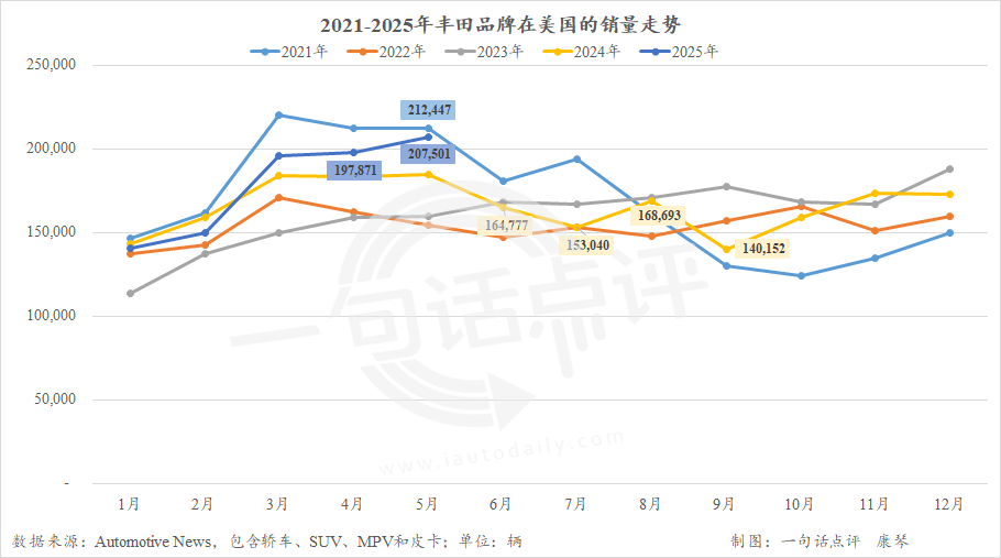 ●现代-起亚5月销量也环比0.7万辆增加17.0万辆,这是其进入美国市场有史以来单月次高成绩,只略低今年3月的17.3万辆。