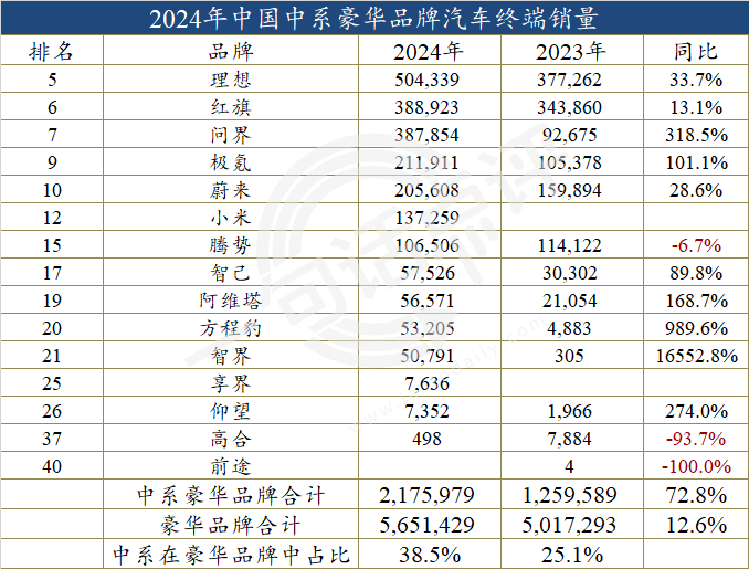 借助新能源赛道,2024年自主阵营豪华车的销量首次超过德系,中国车市的格局真的改变了。