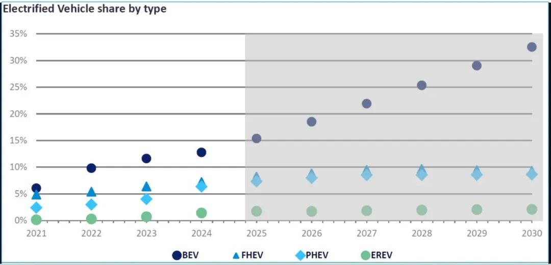 插电式混合动力汽车和增程式电动汽车在全球xEV领域正展现出强劲的发展势头,得益于消费者兴趣的日益增长和汽车制造商的不断投资,预计到本世纪末,它们将占据汽车总产量的关键力量。
