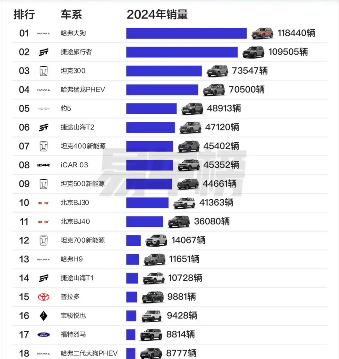 于是,一大批方盒子车型应运而生。包括深蓝318、捷途旅行者和方程豹 豹5等车型相继冲入这条赛道,但从目前的市场表现来看,显然,在愈发激烈的市场竞争中,长城的“方盒子”车型受到了来自竞品车型的不断冲击,但其市场地位依然稳固。