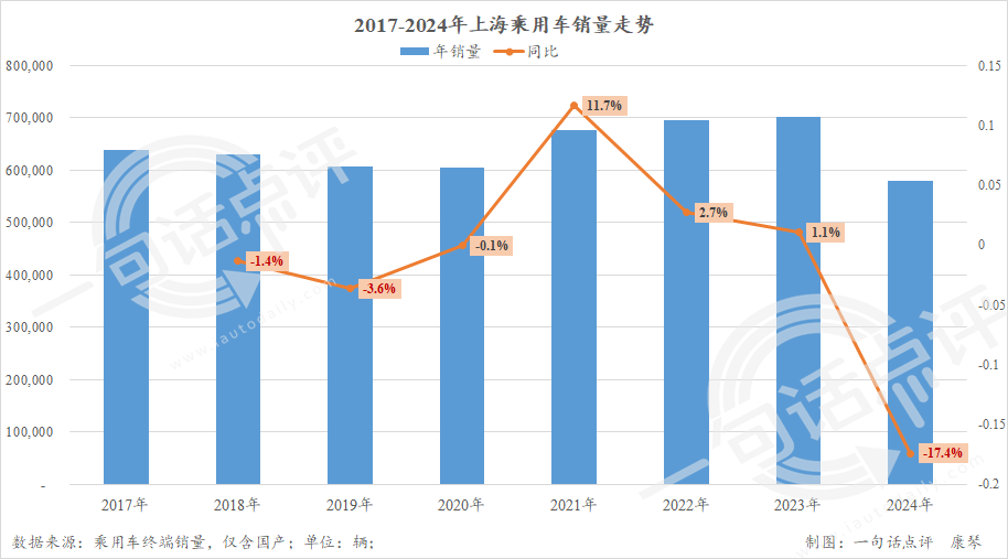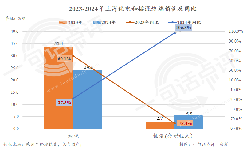 正是因为2023年取消了插混的免费绿牌,2024年又提高了纯电获得免费绿牌的门槛,这两年里上海的新能源乘用车市场才会无法跟上国内整体的步伐。
