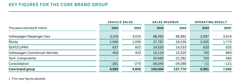 而在乘用车部门内,核心品牌组合的销售额增长了2%,达1400亿欧元,营业利润为69.61亿欧元,同比下滑4%。