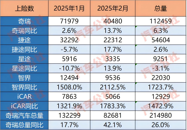 而从细分品牌来看,3月份奇瑞品牌为118,955辆,星途品牌7,618辆,捷途品牌54,020辆,iCAR品牌7,016辆,智界品牌10,005辆。