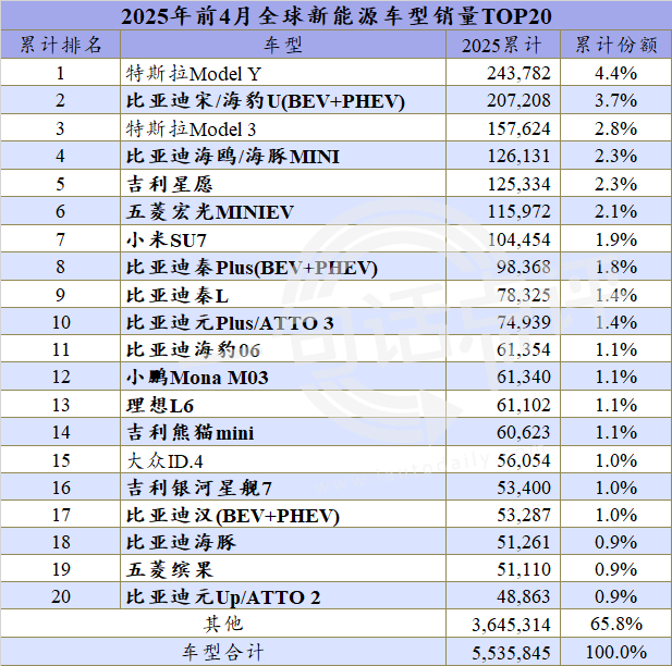 虽然,4月Model Y不敌宋,但由于一季度前者领先近4万辆,因此在前4月的累计榜单中其仍以24.4万辆稳居第一,要彻底超过它还是非常困难的。