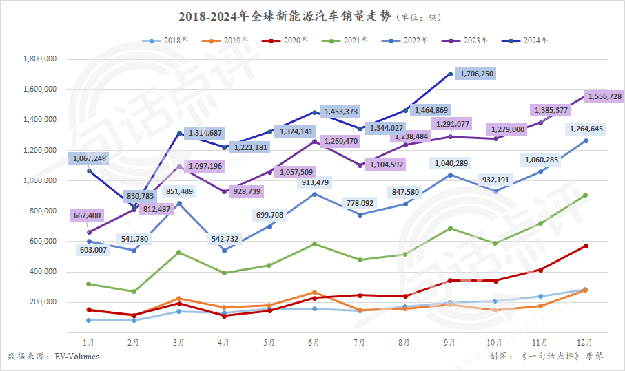 这使得今年前9月全球轻型车新能源市场的总销量收于1170.9万辆。参考往年的走势,接下来的四季度全球轻型车新能源的销量大概率能达到500万辆左右,由此推算今年全年该细分市场总销量将有望攀升至1650万辆以上。