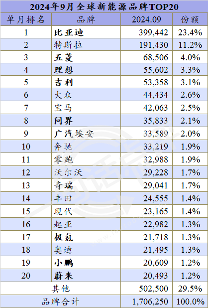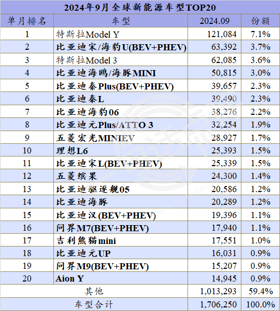 从9月和前9月全球新能源畅销车型销量TOP20来看,虽然欧洲市场回暖,但因其体量几乎只相当于中国的四分之一,因此榜单中的绝大多数车型依旧是中国电动车,9月甚至创下18款的历史最高纪录。