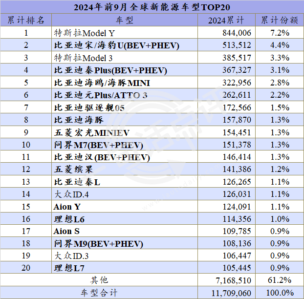 比亚迪宋似乎也被7月上市的全新车型比亚迪宋L DM-i影响,9月宋为6.3万辆,环比减少约2000辆,不过前9月其总量已达到51.4万辆,领先身后的Model 3接近13万辆。因此,它肯定能再次成为全球新能源车型年度车型销量亚军。