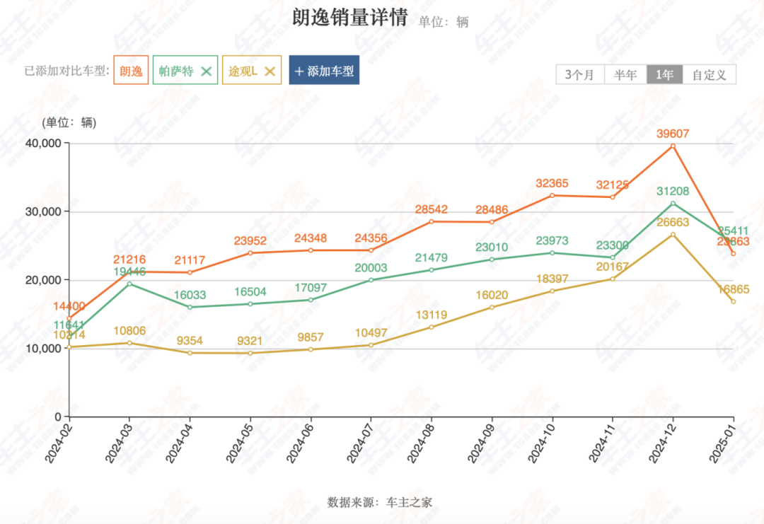 而在2月的表现中,最大的亮点在于全新途观L Pro和帕萨特Pro两款新车,在它们的带领下,2月途观家族实现销售超1万辆、帕萨特家族销量近1.6万辆,进一步巩固了各自细分市场第一梯队的领先地位。不仅如此,在传统紧凑级市场,朗逸家族售出近1.9万辆,途岳新锐则延续了1月份的势头实现销量近1万辆。