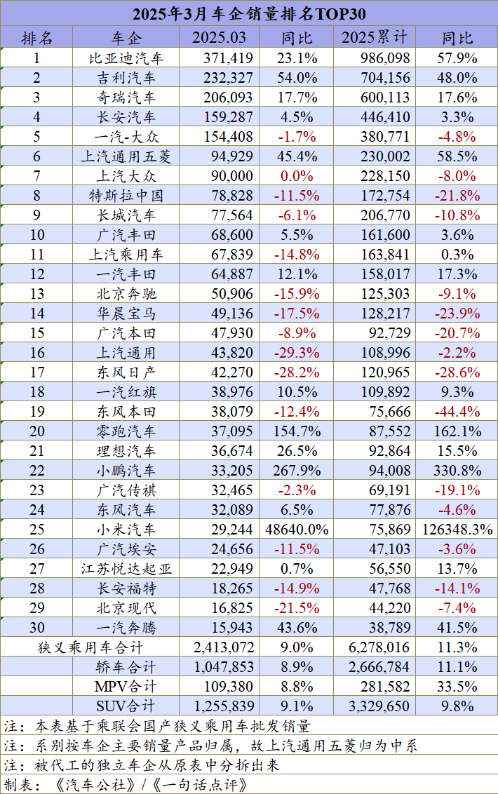 一季度车市已经告一段落,按照狭义乘用车整体来看,行业表现良好。来自乘联会的数据显示,3月全国乘用车厂商批发241万辆创当月历史新高,同比增长9%;1-3月全国乘用车厂商批发628万辆,同比增长11%。
