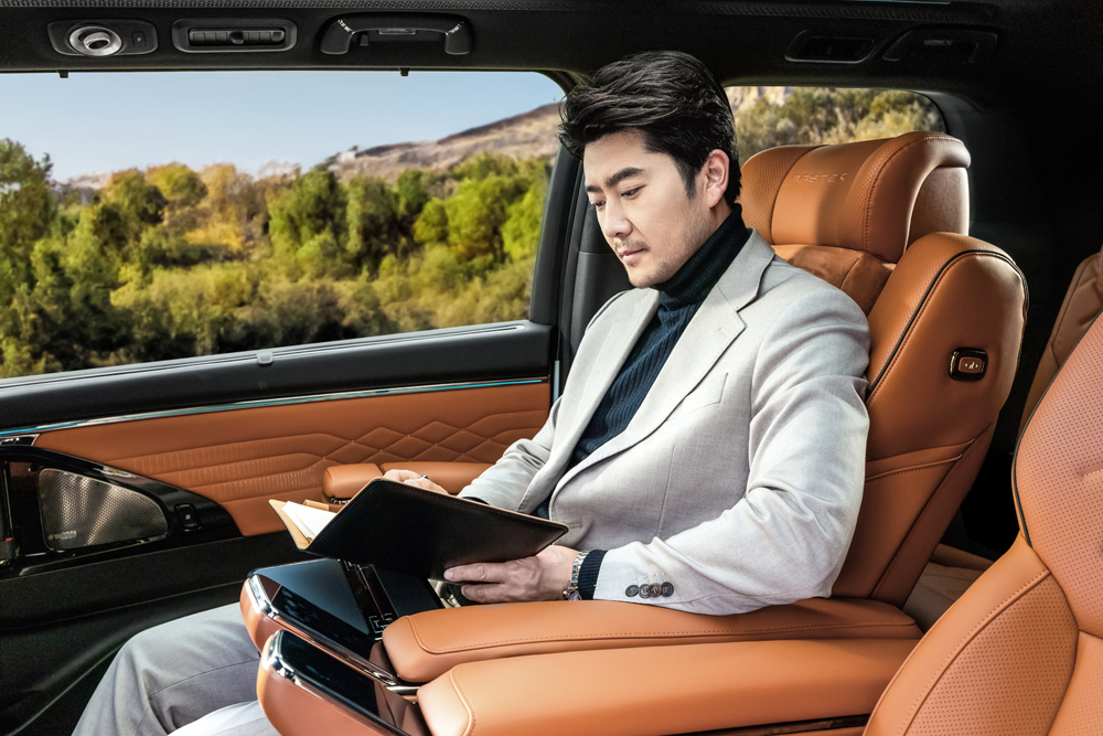 当需要在车内办公时,这些配置能随时随地助你运筹帷幄。座椅配备航空180°折叠皮质小桌板、翻转杯托、双50W无线充、220V电源插座、二排遮阳帘等豪华便捷配置,满足你在旅途中的各种需求。无论是处理紧急文件,还是享受一杯热茶,亦或是为设备充电,这一切都能在车内轻松完成。
