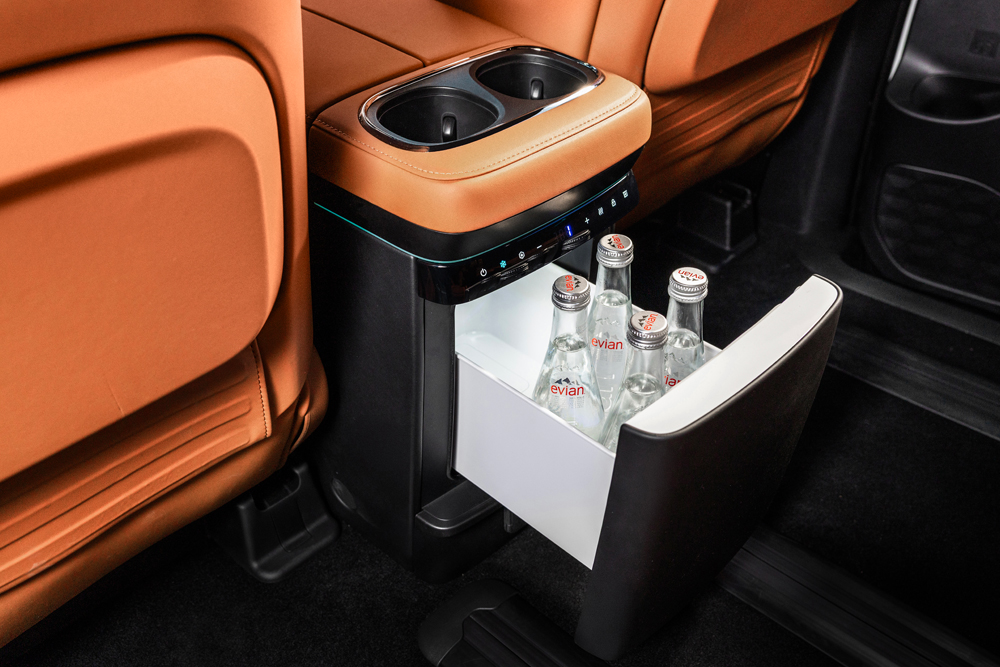 沙发和电视都有了,当然还少不了大冰箱。9.0L大容量三温四控智能冰箱采用独立高效压缩机支持-6℃至50℃宽域调节,集成紫外线杀菌与24小时持续运行功能,并且前后排均可取物,满足全车人冷饮存储与母婴温奶等多重需求。